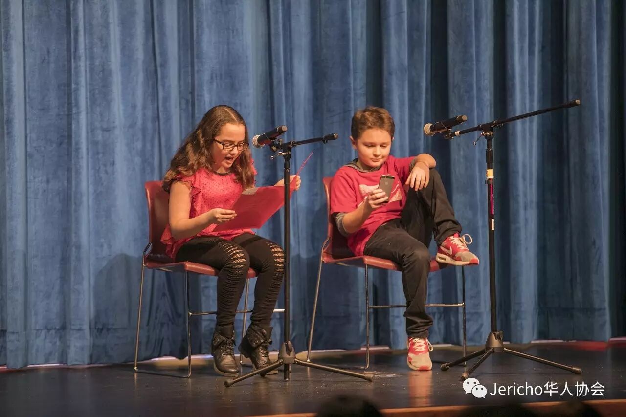 今年春節晚會表演節目有一組特別的面孔︰Lauren Marchand、Ray Principle代表中文班學生表演了小品。聽他們用流利的中文演出,讓人不禁豎起大拇指! Willam Wang 和 Henry Wang,兩位帥氣的小伙子為我們帶來純正的京腔相聲,加上長袍馬褂,行頭正、內容勁,觀眾們紛紛拍手叫好! 由Jericho父母和孩子擔綱主演的音樂劇 “練琴”,內容寫實,其中許多對話似曾相識,令人莞爾,可說是本晚會最佳的心靈雞湯。