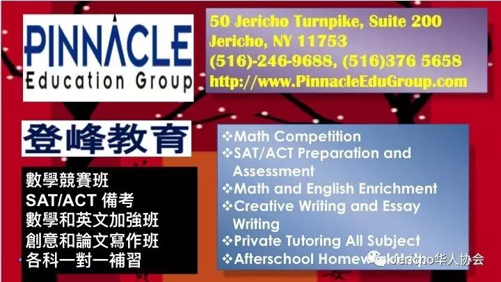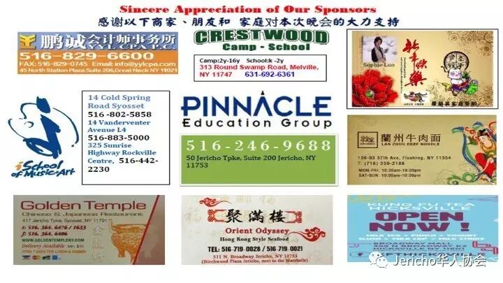 第七屆Jericho華人春節慶祝晚會於2017年 2月11日於Jericho高中大禮堂盛大舉辦。當天適逢元宵佳節,協會為大家準備的燈謎和畫臉等遊戲,為本次晚會揭開了序幕。本次晚會節目由Jericho學區家長和孩子共同參與演出,其內容和水平堪比央視春晚,讓與會嘉賓們大為讚嘆!