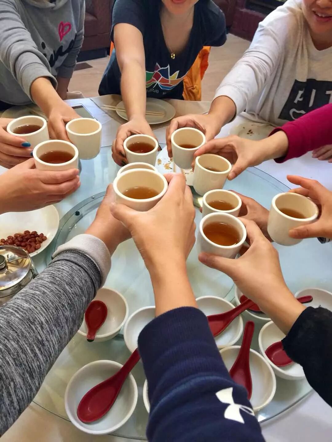 大家一边商量着何时再约一次郊游,下回一定要来好好欣赏一下这湖边山下的冷泉镇图书馆,一边上车前往下一站聚餐的饭店。一些有时间冲突的妈妈爸爸们无法参加聚餐。 而另一些偷得浮生半日闲的妈妈们则凑在一起。实实在在的菜肴摆满一大桌子,香味扑鼻,色泽诱人。刚刚运动过的妈妈们找到了好理由可以暂时把平日的顾虑抛在一边。一时间好像回到了同学少年时。推杯换盏,美味佳肴间,话题也从孩子家庭扩展开来。大家聊起生活趣事,自己的爱好,不禁相谈更欢。