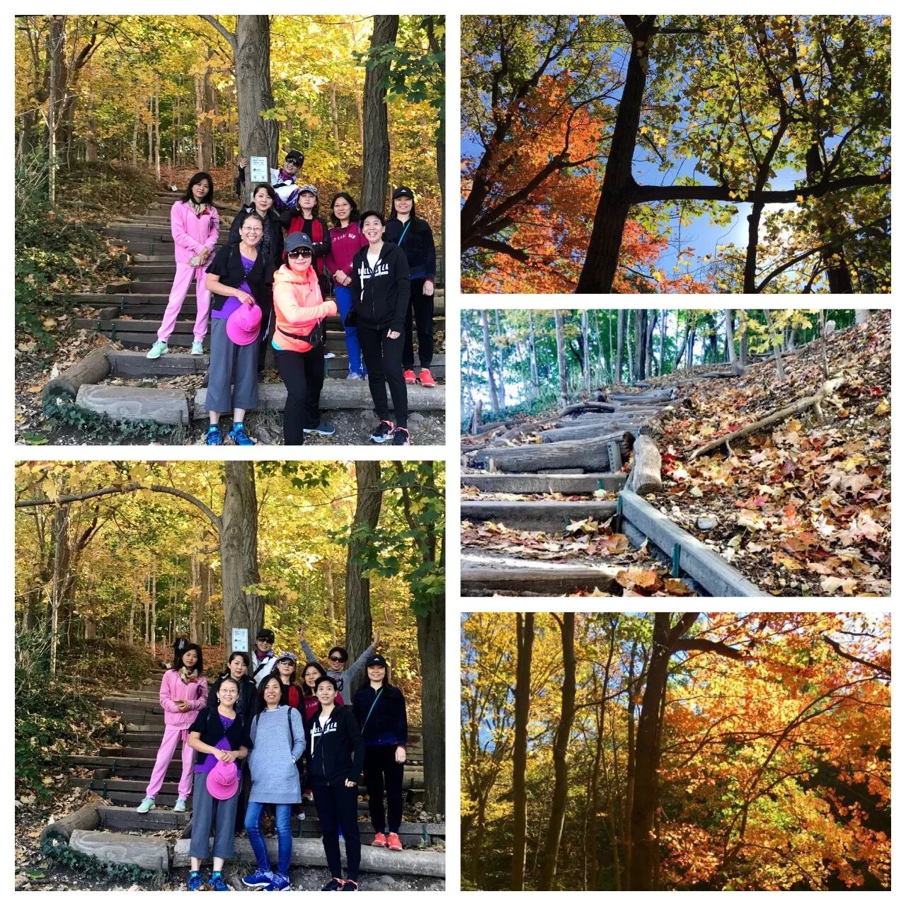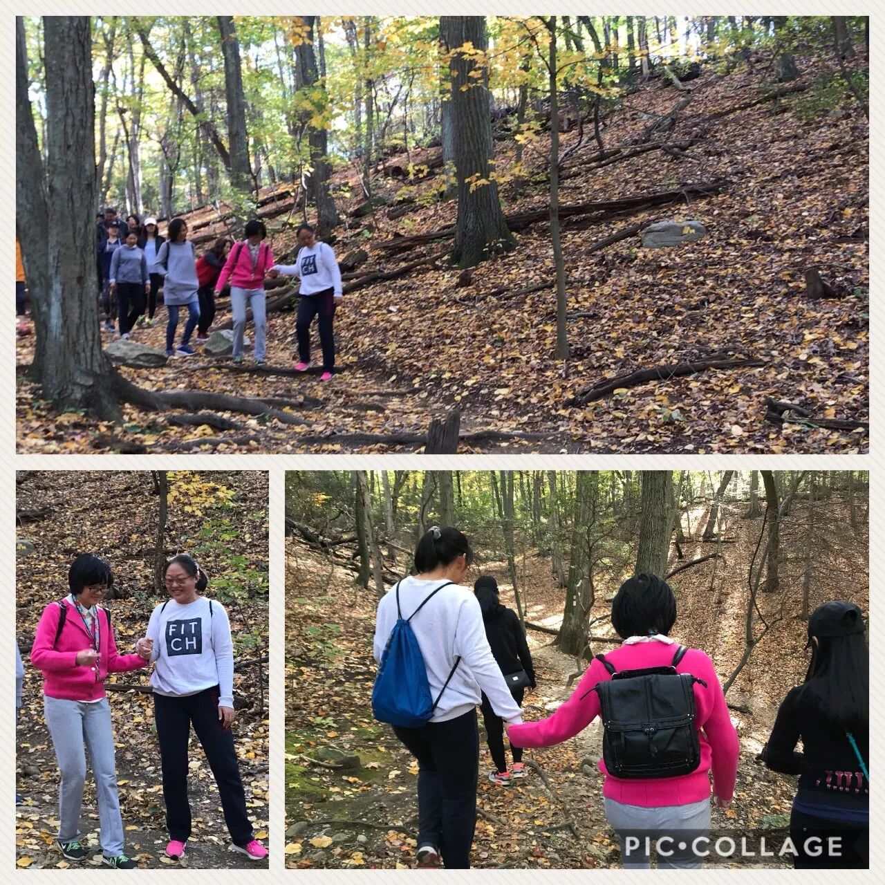 一张合影后,大家开始登山了。这山路并不平坦,地势时而上时而下,行进间或有金黄的落叶,或有盘错的树根。一路走来大家相互扶持。妈妈们个个身手矫健,笑谈都是带娃练出来的。